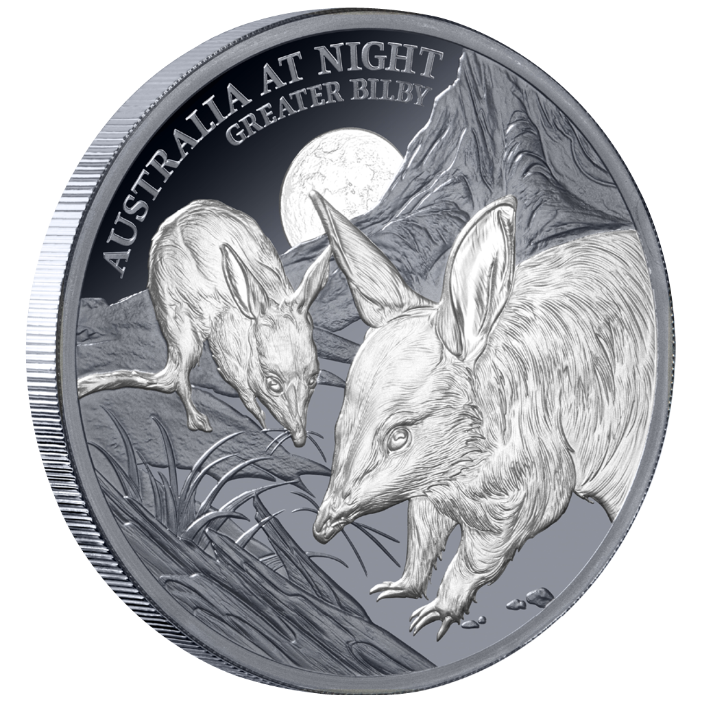 Australien bei Nacht - Kaninchennasenbeutler - 2026 - 1 oz Silbermünze Black Proof