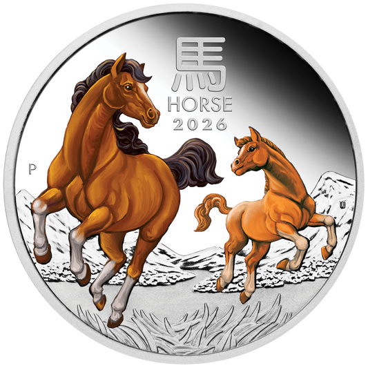 Lunar III Jahr des Pferdes 2026 1 oz Silbermünze Farbe Color PM PP in Box***