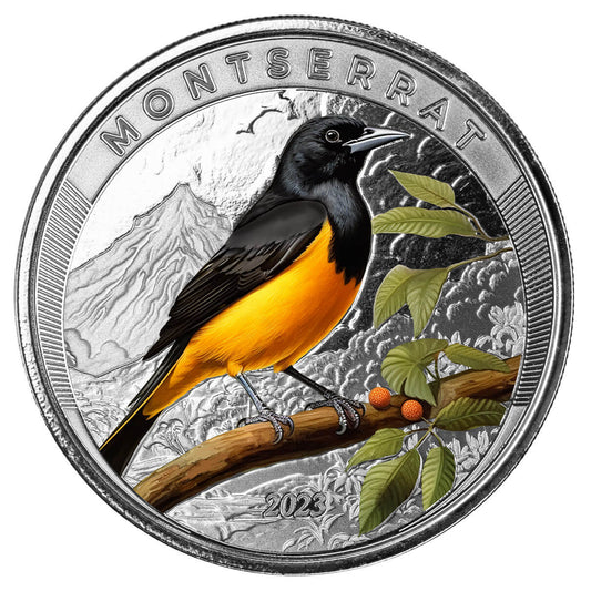 Eastern Caribbean 2023, Montserrat Pirol Oriol Vogel Color EC8, 1 Oz Silbermünze*