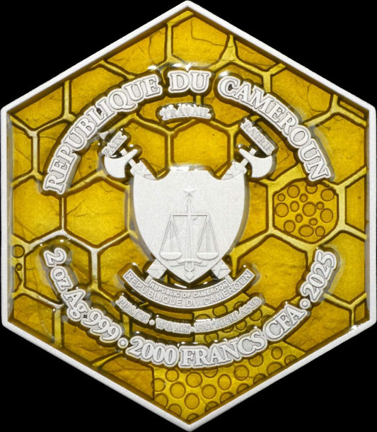 Cameroon Honey Bee 2025, HR, Color, Shaped Coin, 2oz Silbermünze*