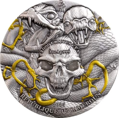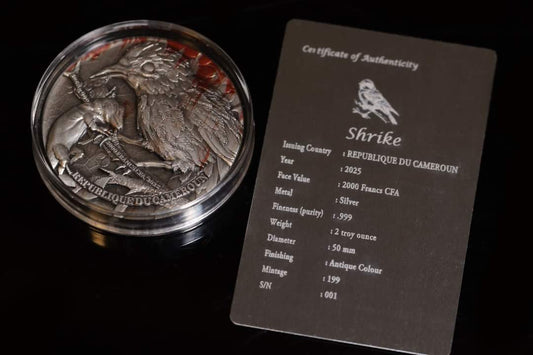 Cameroon Shrike - Lord of Pain 2025, HR, Antik, Color, 2oz Silbermünze*