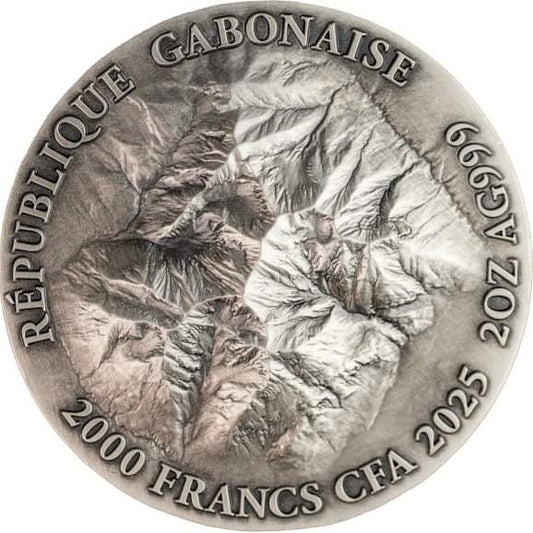 Gabon Flat Earth Theory 2025, HR, Antik, Color, 2oz Silbermünze*