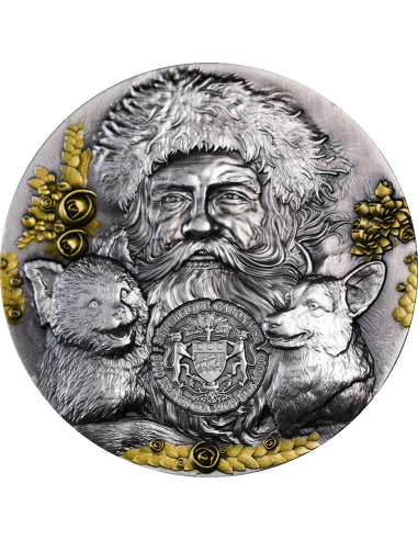 Gabon Krampus & Santa Claus 2025 3oz Silbermünze HR, Antik, Gilded*