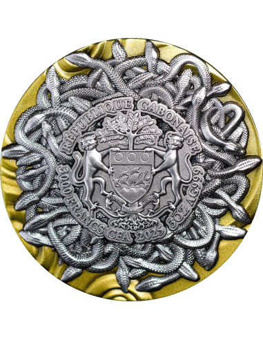 Gabon Medusa The Innocent Victim 2025 3oz Silbermünze HR, Antik, Color*