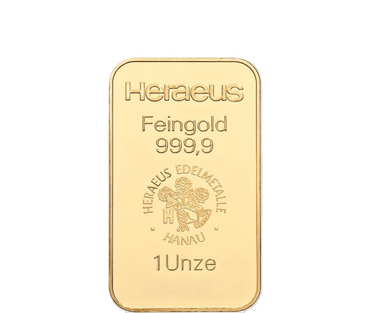 Goldbarren 1 oz / 31,1 Gramm Heraeus .999 Feingold im Blister mit Zertifikat**
