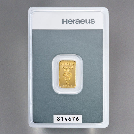 Goldbarren Kinebar 2 Gramm Heraeus 999 Feingold im Blister mit Zertifkat**