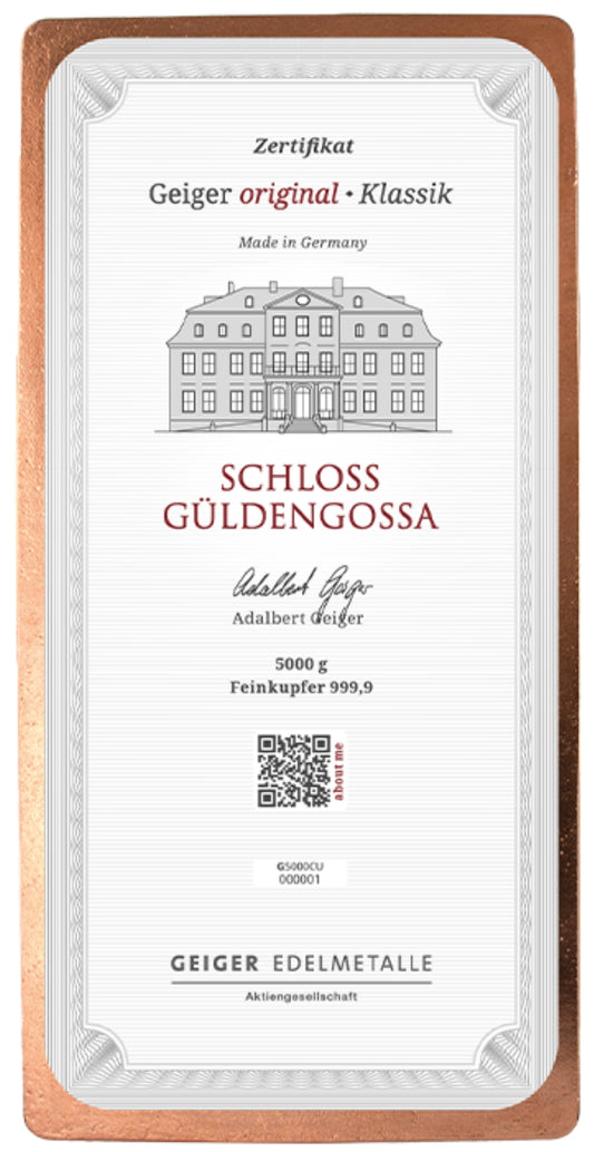 Kupferbarren Geiger original - 5 kg Kilo - gegossen rechteckig