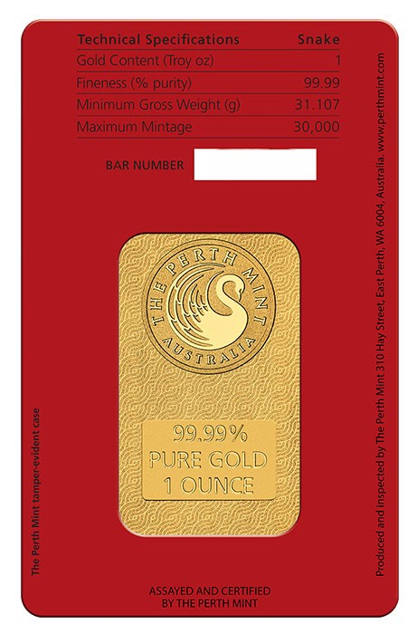Lunar Snake Schlange Perth Mint 1 oz Goldbarren**