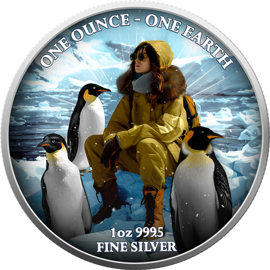 Fiji One Earth - Kontinente - Antarktis - 1 oz Silbermünze 2022 Color UV