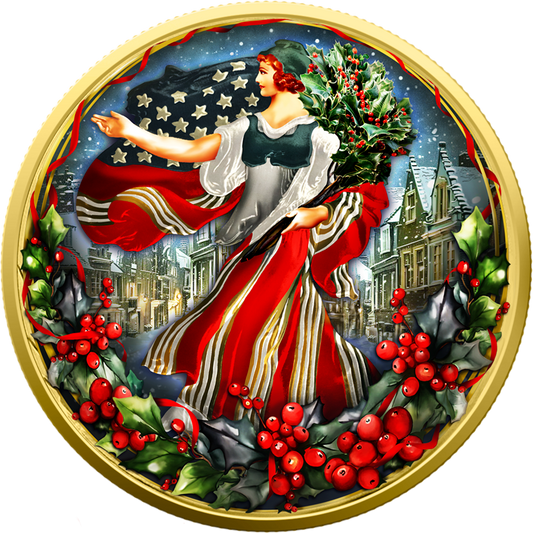 American Eagle Merry Christmas Gilded Color 1 oz Silbermünze 2024