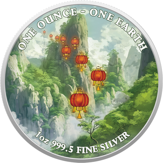 Chinese Myths and Legends - Four Guardians Lan 2024 1 oz Silbermünze Color Farbe *