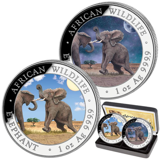 Somalia Elefant 2024 Day & Night Set 2 x 1 oz Silbermünze