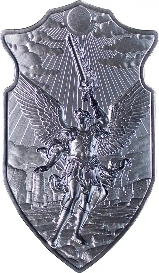 Erzengel Uriel Schild 2 oz Silber 2025 High Relief - Antik Finish
