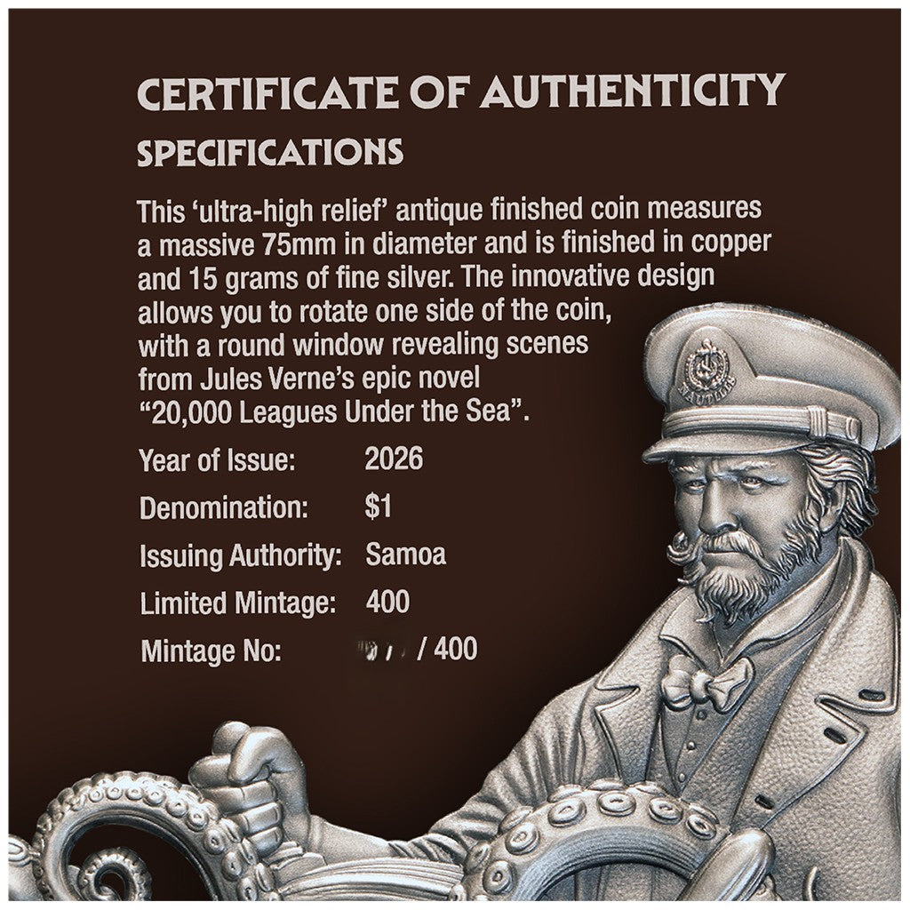 20.000 Meilen unter dem Meer - mit rotierendem Fenster - 2026 - 355 Gramm Kupfer/Silbermünze***