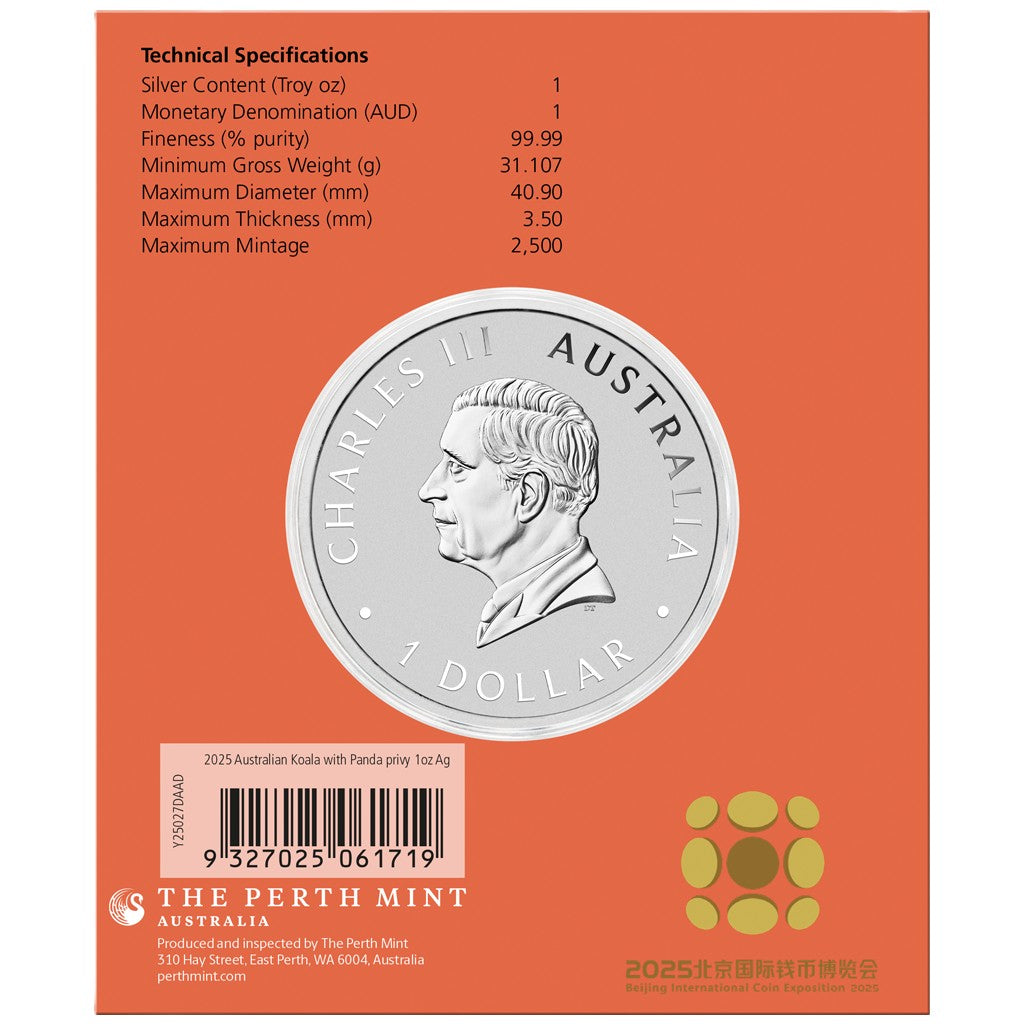 Australien Koala - 2025 - Privy Mark Panda - Beijing Coin Show Special - 1 oz Silbermünze***