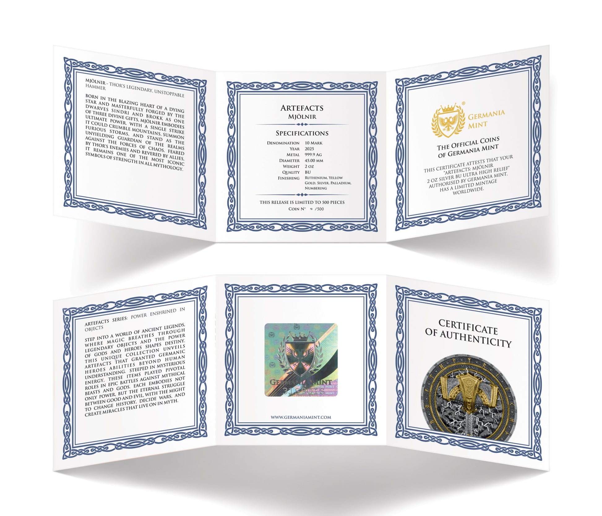 Germania Mint - Artefacts - 2# Mjölnir - 2 oz Silbermünze UHR***