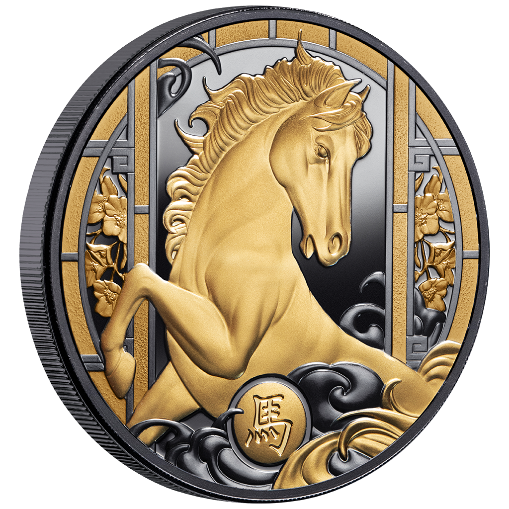 Niue - Lunar - Jahr des Pferdes - 2026 - 1 oz Silbermünze Teilvergoldet Black Proof***