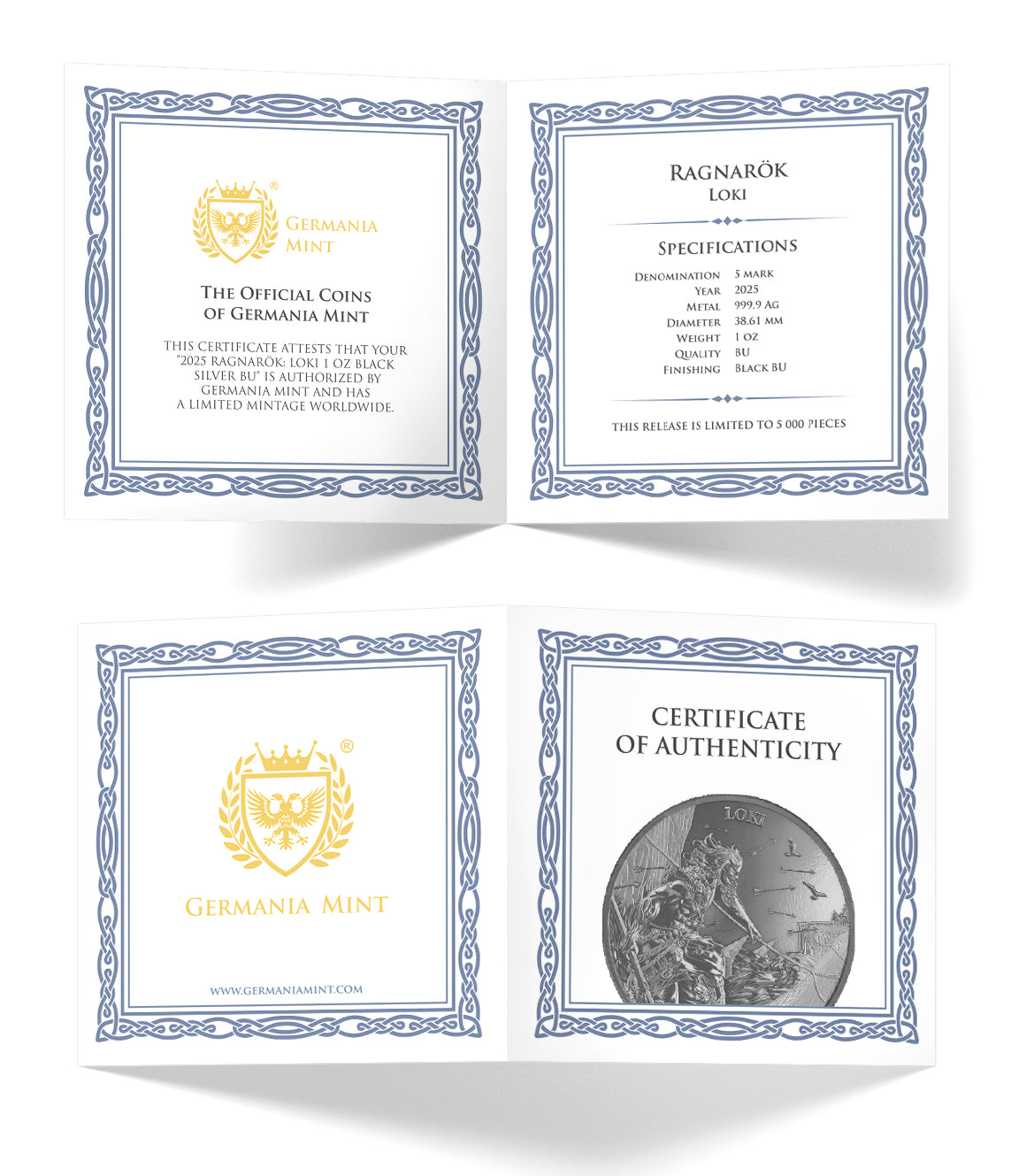 Silbermünze Ragnarök Loki 1 oz Black 2025 BU Germania Mint