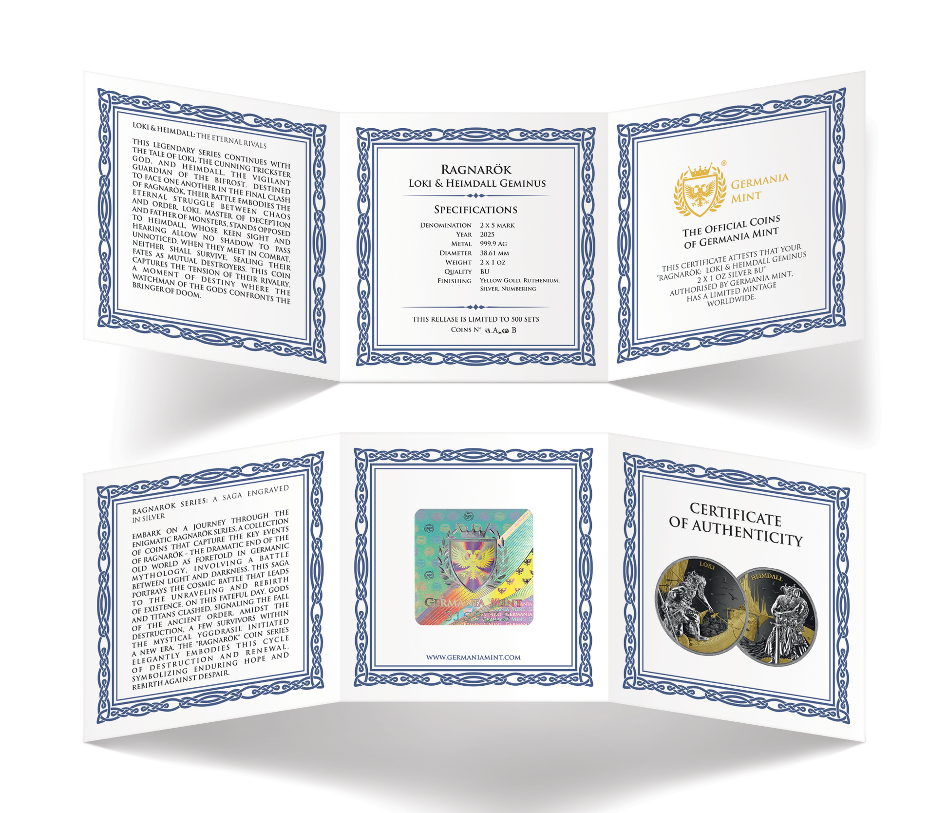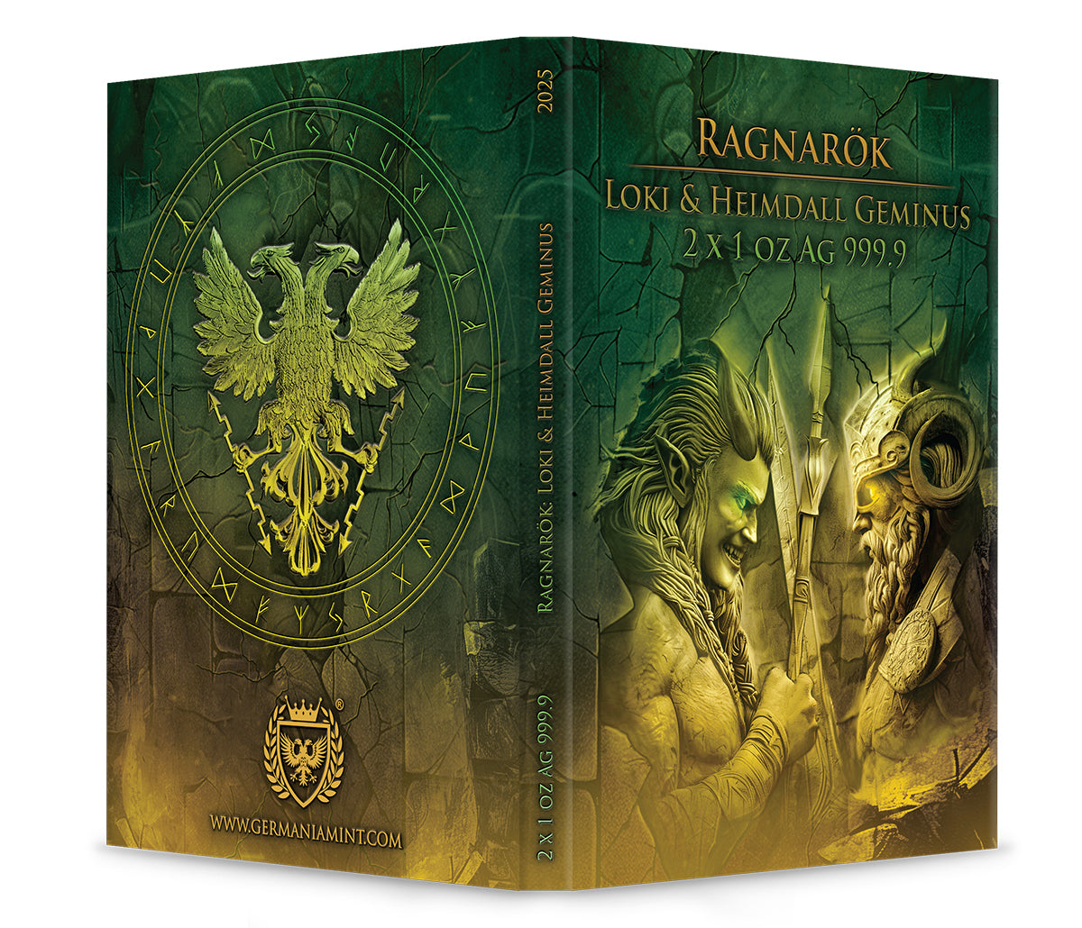 Silbermünze Ragnarök Loki & Heimdall Geminus 2 x 1 oz 2025 Teilvergoldet Ruthenium Germania Mint***